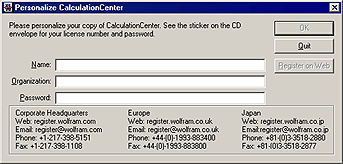 7. The first time you start CalculationCenter, you will be asked to personalize your copy. Enter the password given on the CD envelope. Then click OK.