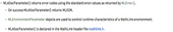- MLEnvironmentParameter objects are used to control runtime characteristics of a MathLink environment.