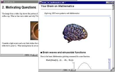 The Mathematica TE front end supports "notebooks", in which you can mix text, animated graphics, and actual Mathematica TE input.