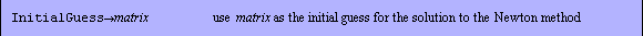 The initial guess is supplied by the user as the value of the option InitialGuess, as shown in the following example. With the option value InitialGuess Automatic, the initial guess is generated from the Schur method. This is the default option value.