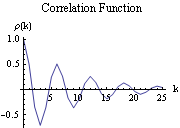 Note that if we do not need the correlation function for other purposes we can directly include the calculation of the correlation function inside the function plotcorr as shown below. This gives the plot of the correlation function for 1=-0.7. Out[23]= |  |