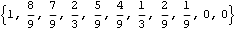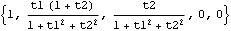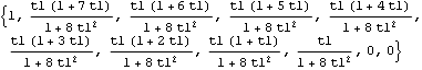 Note that we have avoided typing t1 eight times by using Table[t1, {8}] to generate the eight identical MA coefficients. To get the correlation function for =1 we can simply substitute t1=1 in the above expression using % /. t1 -> 1. This gives the correlation function for =1. Out[27]= |  |