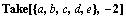 Example: Take[{{a, b, c}, {d, e, f}}, -1, 2] .