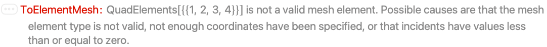 This message is generated when mesh elements that are not valid are specified: