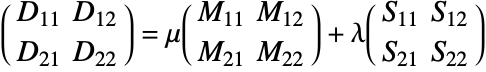 is a linear combination of the mass matrix and the stiffness matrix. The structure of the system matrices for the two dependent variable coupled transient PDEs is represented as follows: