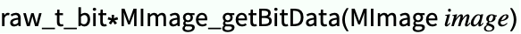 MImage I0;raw_t_bit* data;mint i, len;...len = libData->MImage_getFlattenedLength(I0);data = libData->MImage_getBitData(I0);for (i = 0; i < len; i++) { raw_t_bit elem = data[i]; ...}