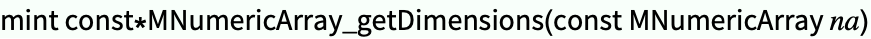 MNumericArray A0;mint const* dims;...dims = libData->numericarrayLibraryFunctions->MNumericArray_getDimensions(A0);