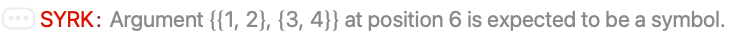- To use SYRK, you first need to load the BLAS Package using Needs["LinearAlgebra`BLAS`"].