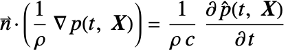 When the time-harmonic relation (3) is inserted into the wave equation, the equation simplifies to a time-independent Helmholtz equation. The derivation of the Helmholtz equation from a wave equation will be presented in a later section entitled Derivation of the Frequency Acoustics Model from Time Domain Model. For now, it is important to understand that an unknown sound field can be solved for in the frequency domain by using the angular frequency in the Helmholtz PDE model (4):