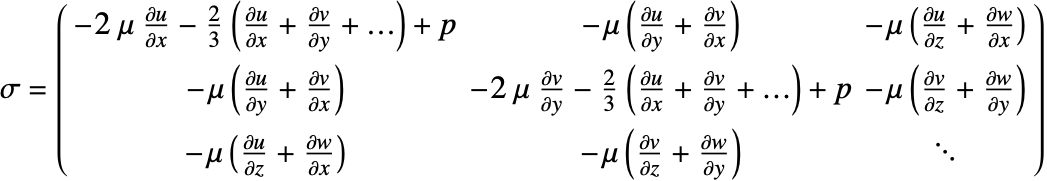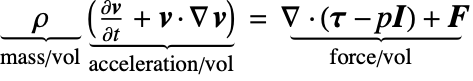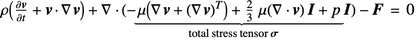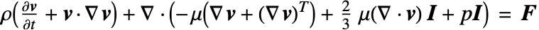 The momentum equation for a compressible fluid flow is a vector-valued equation expressed with the viscous stress tensor