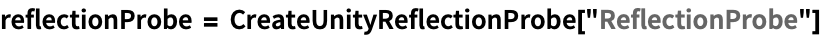Wolfram Research (2019), UnityReflectionProbe, Wolfram Language function, https://reference.wolfram.com/language/UnityLink/ref/UnityReflectionProbe.html.