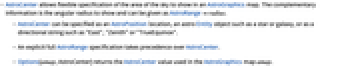 - AstroCenter 允许灵活指定在 AstroGraphics 中显示的天空区域. 需要补充的信息是要显示的角半径,可通过 AstroRangeradius 给出.