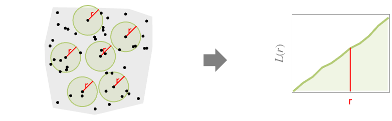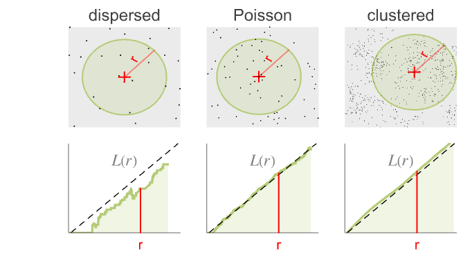 - BesagLは,完全に空間ランダムな参照過程との比較を簡単にするRipleyK関数の変換である.