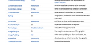 Top,Bottom,Left,Right,Center, Front,Back 在气泡图中的坐标 Above,Below, Before, After 在气泡图外的坐标 {{bx,by,bz},{lx,ly}} 缩放尺度坐标 {lx,ly} 到气泡图坐标 {bx,by,bz} - BubbleChart3D 有和 Graphics3D 相同的选项,并有下列附加变化: [所有选项的列表]