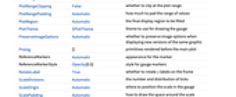 "name" 已命名的记号外观 Graphics[…],Image[…],… 记号所使用的图形或者图像 ChartElementData["name",…] 图表元素函数 None 忽略 value 的记号 f 用于创建仪表元素的纯函数 {marker1,marker2,…} 对第 i 个值使用 markeri Placed[spec,location] 在 location 以 spec 放置记号 - BulletGauge 支持 GaugeMarkers 和 ReferenceMarkers 的 Placed 内的下列位置: