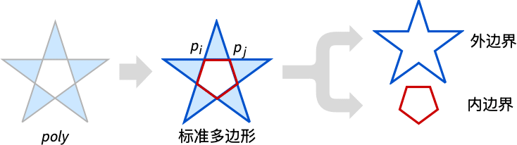 给出多边形 poly 的标准表示,其中包含共享坐标和内外边界.