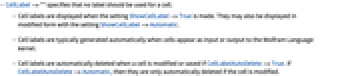 - CellLabelAutoDelete->Trueでセルが修正されたり保存されたりすると,セルラベルは自動的に削除される.CellLabelAutoDelete->Automaticのときは,セルが修正されたときにのみ自動的に削除される.