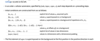 - 在由 {rule,kspec,rspec,s} 指定的 s 阶元胞自动机中,各步取决于之前的 s 步.