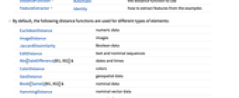 DistanceFunction Automatic 使用する距離関数 FeatureExtractor Identity 例から特徴をどのように抽出するか - デフォルトで,次の距離関数がさまざまな要素に使われる.