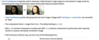- ColorToneMapping 对灰度图和彩色图像有效. 通过 ColorSpace->Automatic 的图像被转化成 "RGB".