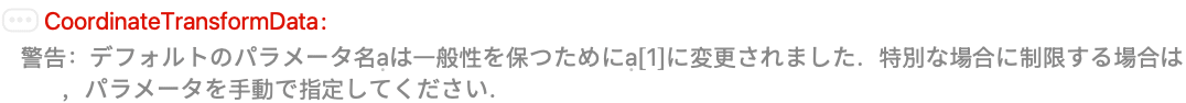 - CoordinateTransformData[t]はCoordinateTransformData[t,"StandardName"]と等価である.