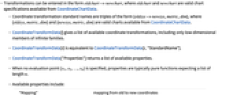 - CoordinateTransformData["Properties"]は使用可能な特性のリストを返す.