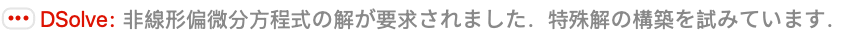 - DSolveが与える解は,明示的に実行できないInactiveな総和や積分を含んでいることがある.そのような場合には変数 K[1], K[2], …が使われる.