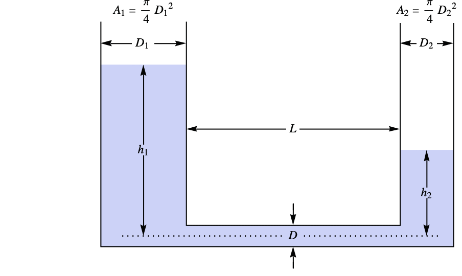 水がパイプを通って1つのタンクから別のタンクに流れるときの,2つの円筒形タンクの水位の変化をモデル化する: