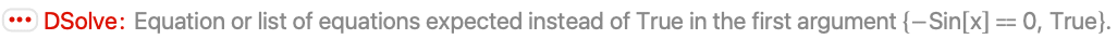 DSolve[eqn,u,x] {{uf},…} 其中 f 为纯函数 DSolve[eqn,u[x],x] {{u[x]f[x]},…} 其中 f[x] 是关于 x 的表达式 - 如果输出为纯函数,可用 eqn/.{{uf},…} 验证解的正确性. »