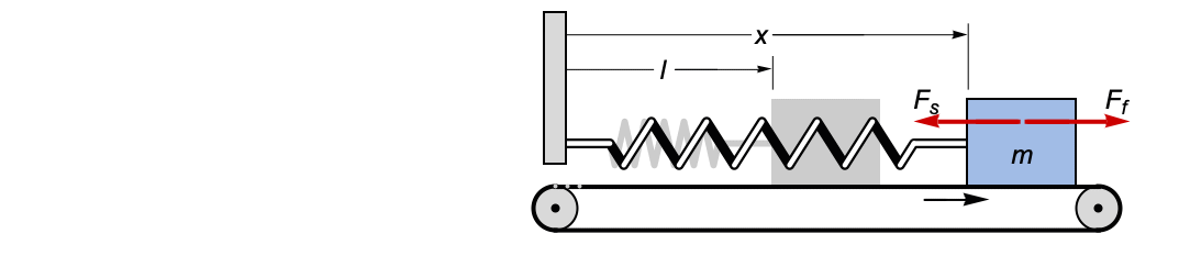 模拟移动传送带上的物块,该传送带通过弹簧固定在墙上. 比较系统参数(物块的质量、皮带速度、摩擦系数、弹簧常数)取不同值时的位置和速度: