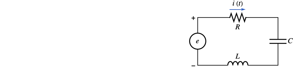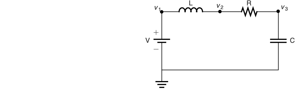 使用元件定律和基尔霍夫连接定律来模拟 RLC 电路对在时间 施加的电压