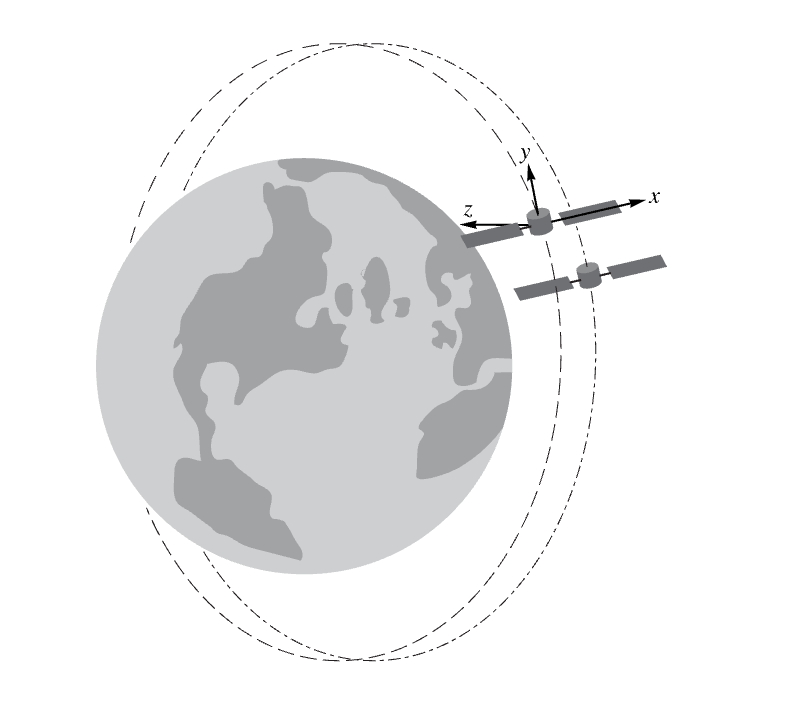 Clohessy–Wiltshire 方程模拟了围绕中心天体运行的两颗卫星之间的相对运动: