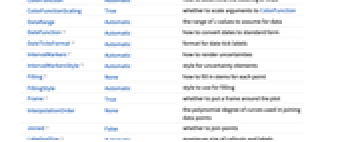 - DataRange 确定了值 {y1,…,yn} 如何解释成 {{date1,y1},…,{xn,yn}}. 可能的设置包括: