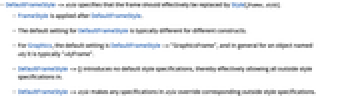 - DefaultFrameStyle->style 指定边框应用 Style[frame,style] 替换.