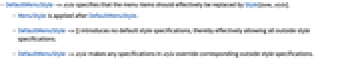 - DefaultMenuStyle->styleは,style の任意指定で対応する外部スタイル指定を無効にする.