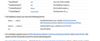 "InputModel" sys 任意一个模型 "FeedbackInputs" All 反馈输入 uf "TrackedOutputs" None 跟踪输出 yt "TrackedSignal" Automatic yref 的动力 - 反馈输入可采用以下形式: