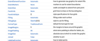 - 设置 ExtentSize->None 时, xmin 等于 xmax, ymin 等于 ymax. 设置 Filling->None 时, zmin 等于 zmax.
