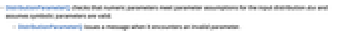 - DistributionParameterQは,数値母数が入力分布 dist についての母数の仮定に合うものであるかをチェックし,記号母数が有効であると仮定する.