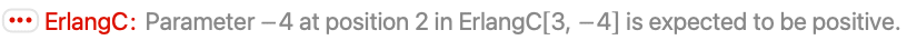 - 具有正的输入的 ErlangC[c,a] 等价于 Probability[n>=c,nStationaryDistribution[QueueingProcess[λ,μ,c]]],其中 a=λ/μ.
