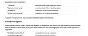 "CompoundCall" 原資産はコールオプションである "CompoundPut" 原資産はプットオプションである - 必要な契約パラメータ