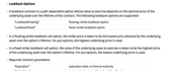 - ルックバック契約は行使時の値が契約全期間における原資産の最適価格に依存する経路依存オプションである.次のルックバックオプションがサポートされている.