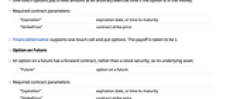 "Expiration" 満期,あるいは満期までの時間 "StrikePrice" 契約の行使価格 - FinancialDerivativeはヨーロピアンの先物コールオプションと先物プットオプションをサポートする.