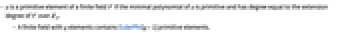 体のすべての非零の元が a の整数ベキなら,a はその周辺体の原始元である: