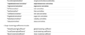 "GlobalClusteringCoefficient" 全局集聚系数 "LocalClusteringCoefficients" 局部集聚系数 "MeanClusteringCoefficient" 平均集聚系数 - 与名称相关的属性包括: