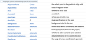 Annotation[ei,label] 注釈を与える Button[ei,action] 要素がクリックされたときに実行する動作を定義する EventHandler[ei,…] 要素の一般的なイベントハンドラを定義する Hyperlink[ei,uri] 要素をハイパーリンクにする Labeled[ei,…] 要素にラベルを付けて表示する PopupWindow[ei,cont] 要素にポップアップウィンドウを付ける StatusArea[ei,label] 要素がマウスオーバーされたときにステータスエリアに表示する Style[ei,opts] 要素を指定のスタイルで表示する Tooltip[ei,label] 要素に任意のツールチップを付ける - GraphPlotでは,Graphicsのオプションに次の追加・修正を加えたものが使える. [全オプションのリスト]