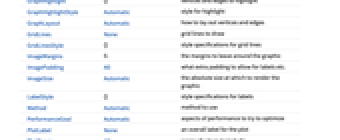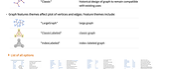 "HighDimensionalEmbedding" 高次元のバネ電気のエネルギー "PlanarEmbedding" 辺交差の数 "SpectralEmbedding" 平方距離の重み付き和 "SpringElectricalEmbedding" バネとしての辺と電荷としての頂点を持つエネルギー "SpringEmbedding" 辺をバネとして持つエネルギー "TutteEmbedding" 辺交差の数と近傍の距離 - PlotThemeの可能な設定には,共通の基本テーマがある.