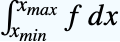 - Integrate[f,{x,xmin,xmax}]は,xminを ∫の下付き文字として,xmaxを上付き文字として表すことによって入力できる.