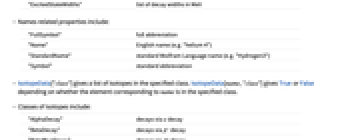 - IsotopeData["Properties"]は同位体に使用できる全特性のリストを返す.