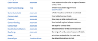 - ColorFunction 默认下提供单个自变量,它由关于每对连续等高层的 f 的平均比例值给出.