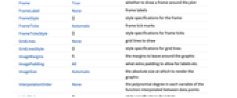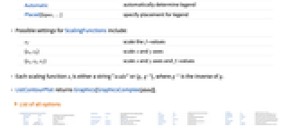 None 不使用图例 Automatic 自动确定图例 Placed[lspec,…] 指定图例位置 - ScalingFunctions 的可能设置包括: